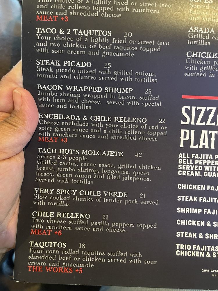 Welcome to Taco Hut, a vibrant haven for Mexican food enthusiasts located at 11815 Foothill Blvd, Rancho Cucamonga. Taco Hut's menu is a delightful tapestry of flavors, showcasing a variety of dishes such as the much-loved bean and cheese burritos, chile relleno burritos, and their exceptional Chimi Roll. The emphasis on quality ingredients shines through, especially in the tender shredded beef and flavorful fish tacos.